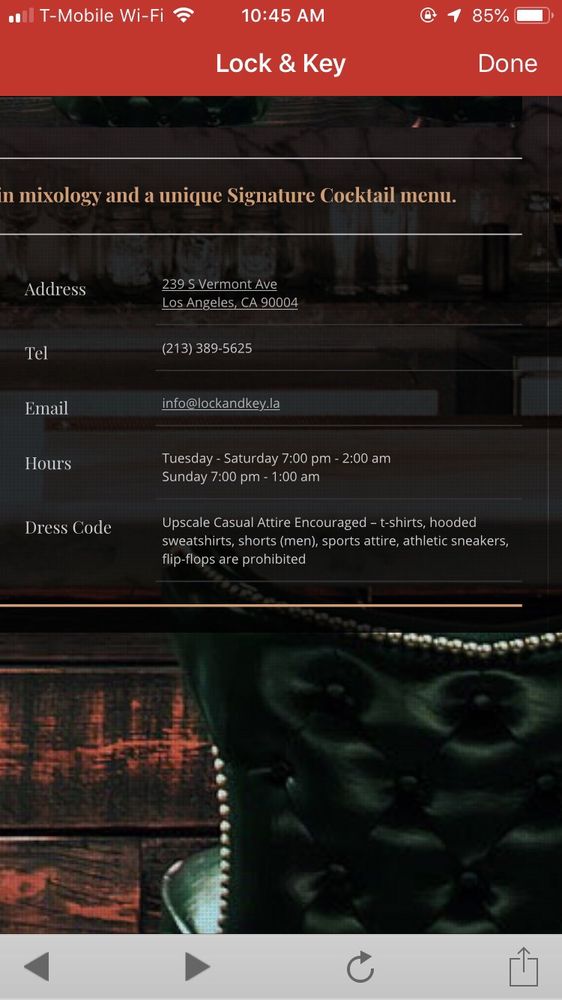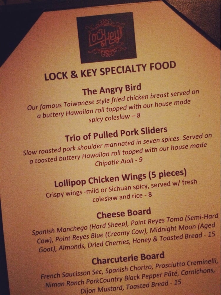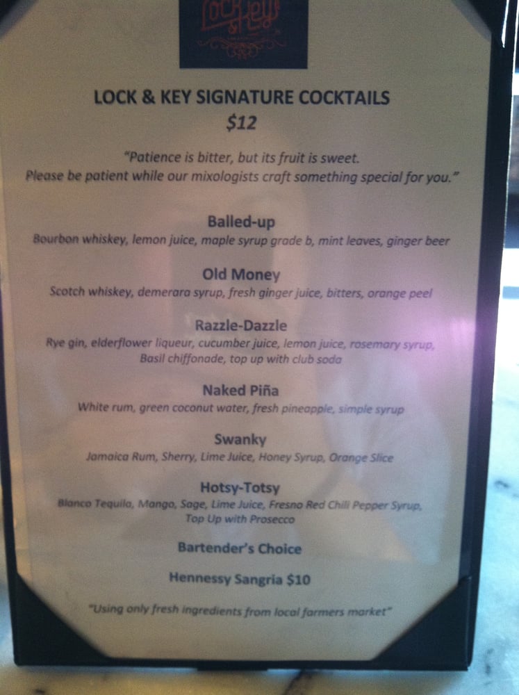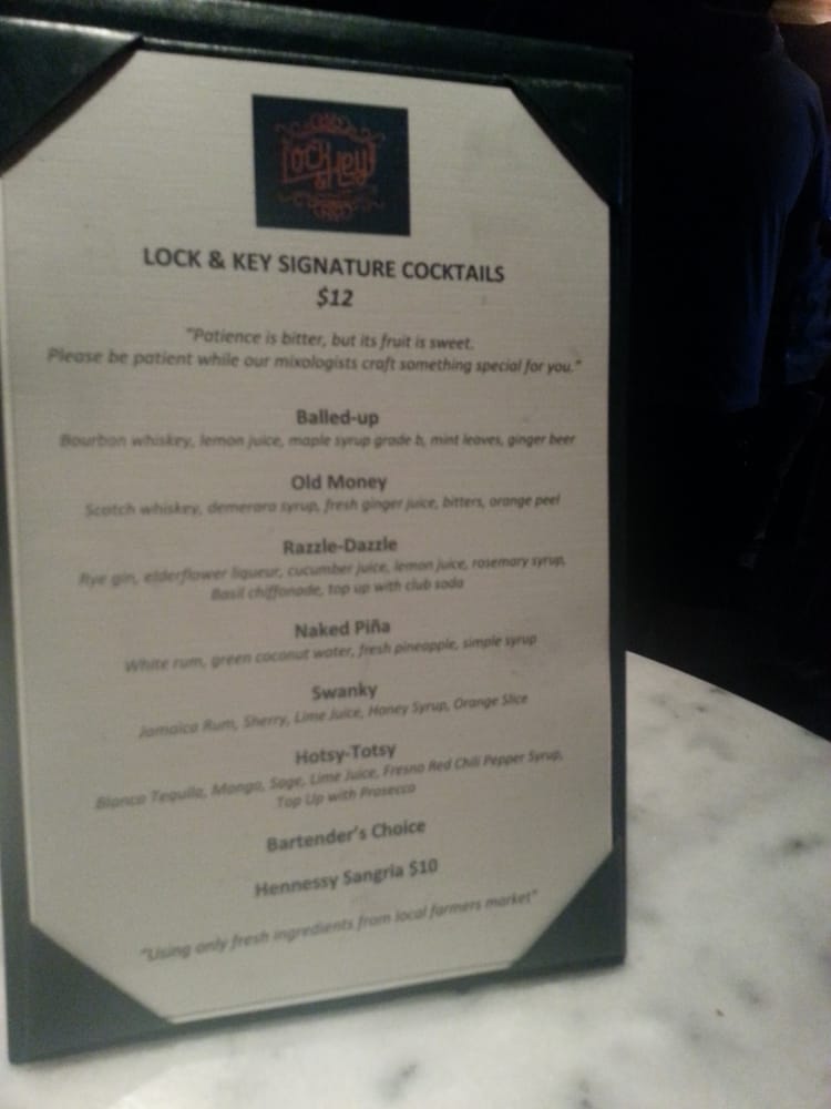 Introducing the menu at Lock & Key, a trendy cocktail bar and dance club in Los Angeles that offers pizza. With a secret entrance and a lively atmosphere, Lock & Key is known for its unique cocktails, like the Strawberry Mule and Toyko Tea, although some customers find the drinks a bit lacking in flavor. The bar has a speakeasy vibe with hip hop music and a small dance floor. While the service can be slow, the friendly bartenders and bouncers make up for it. Customers recommend arriving early to avoid long lines and to enjoy the chill vibe before it gets crowded. Overall, Lock & Key is a fun spot to hang out with friends, but may not be the best choice for those looking for a quiet evening.